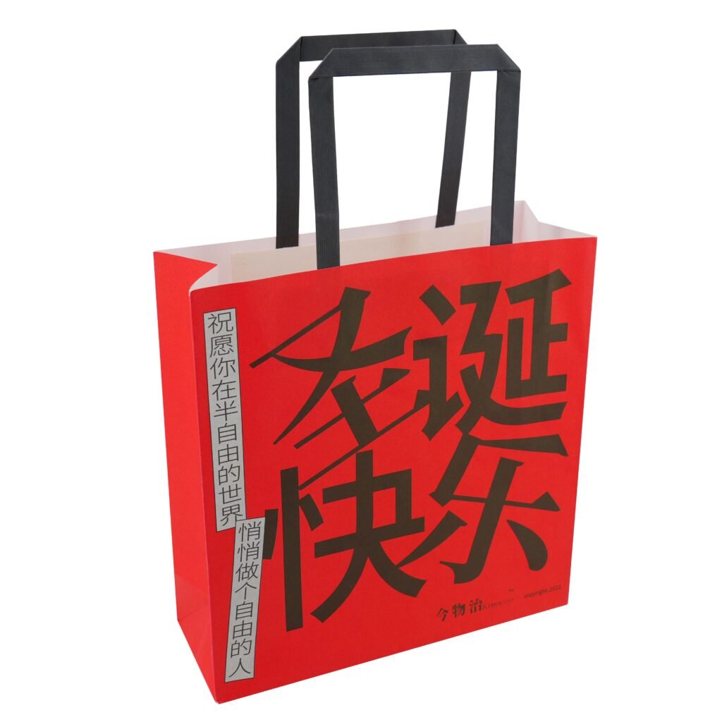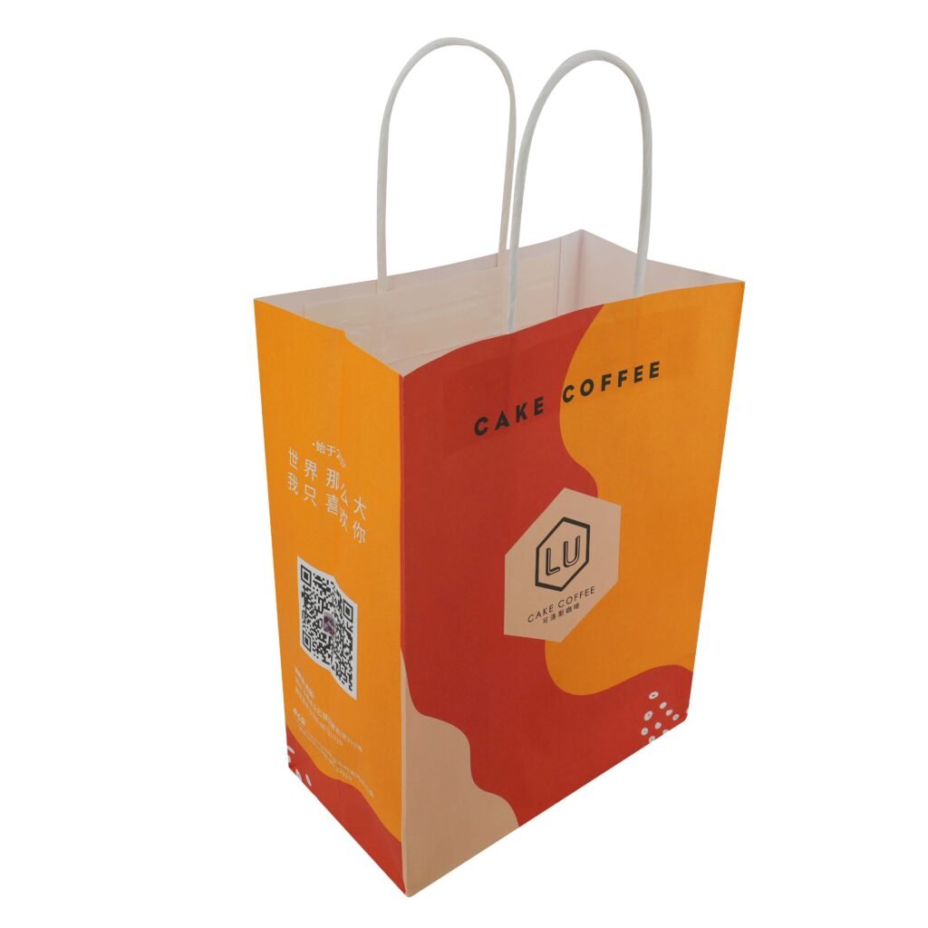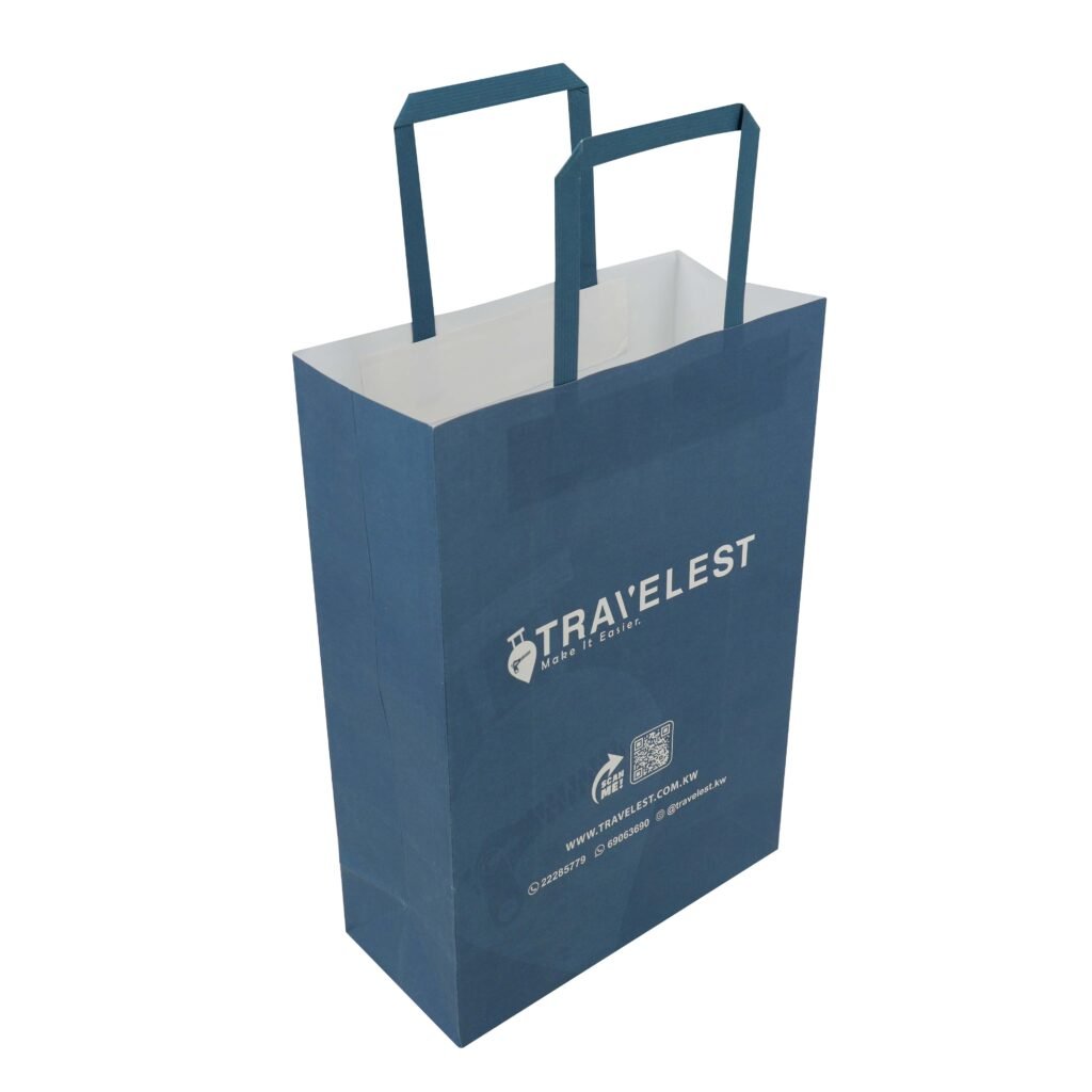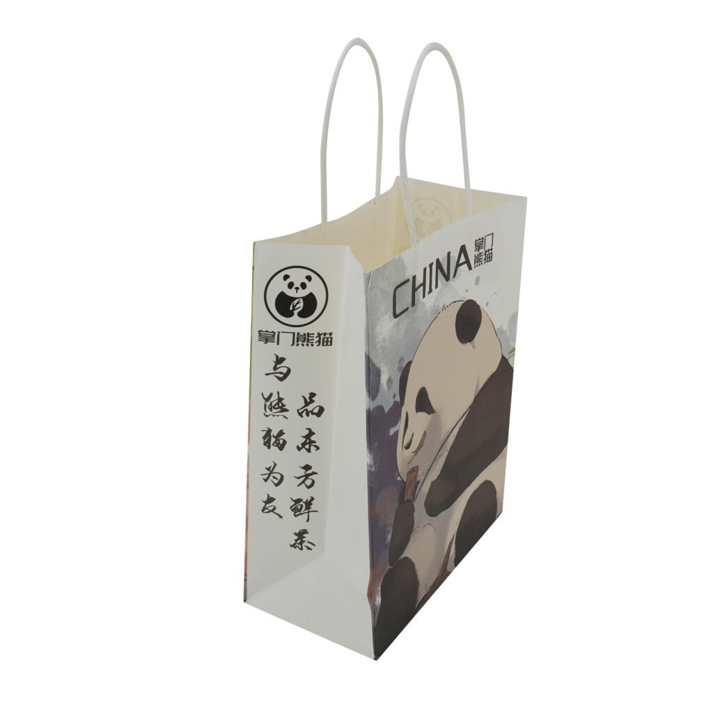 Custom kraft handbag full color ptinting paper bag with flat