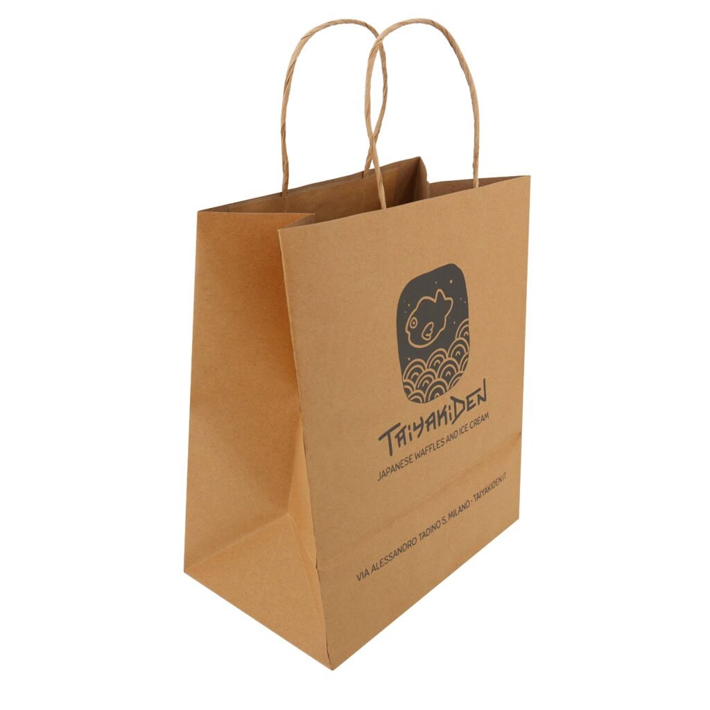We can customize kraft paper bags with logo printing to